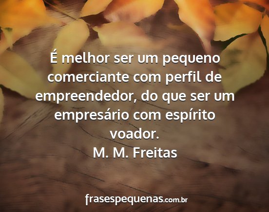 É melhor ser um pequeno comerciante com perfil de empreendedor, do que ser um empresário com espírito voador.M. M. Freitas