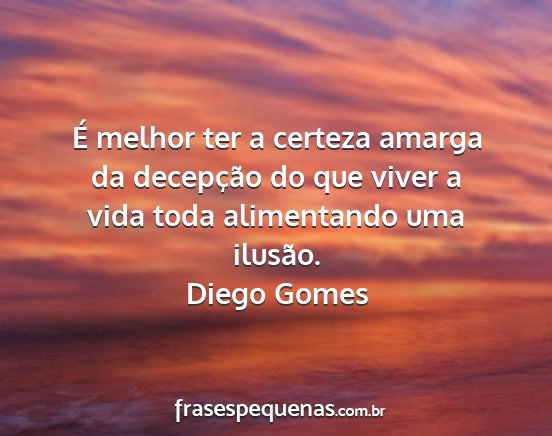 É melhor ter a certeza amarga da decepção do que viver a vida toda alimentando uma ilusão.Diego Gomes
