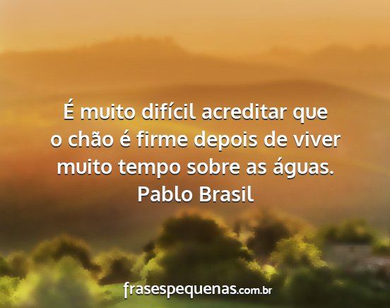 É muito difícil acreditar que o chão é firme depois de viver muito tempo sobre as águas.