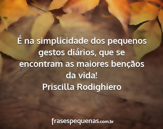 É na simplicidade dos pequenos gestos diários, que se encontram as maiores bençãos da vida!Priscilla Rodighiero