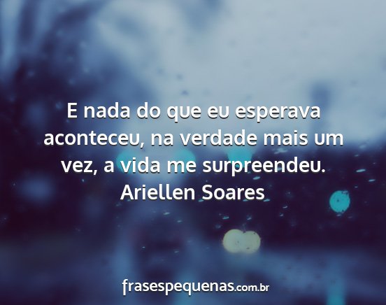 E nada do que eu esperava aconteceu, na verdade mais um vez, a vida me surpreendeu.