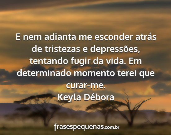 E nem adianta me esconder atrás de tristezas e depressões, tentando fugir da vida. Em determinado momento terei que curar-me.Keyla Débora