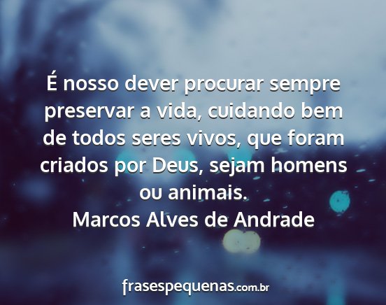 É nosso dever procurar sempre preservar a vida, cuidando bem de todos seres vivos, que foram criados por Deus, sejam homens ou animais.Marcos Alves de Andrade