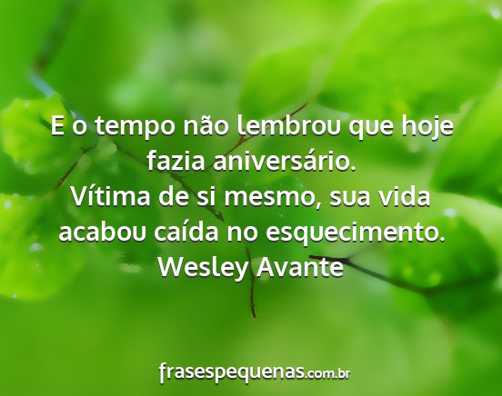 Vítima de si mesmo, sua vida acabou caída no esquecimento.Wesley Avante