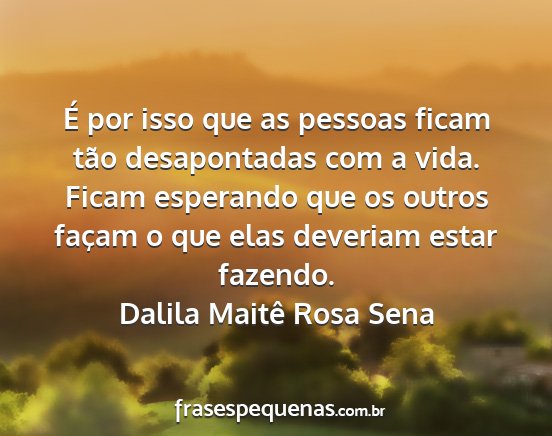 É por isso que as pessoas ficam tão desapontadas com a vida. Ficam esperando que os outros façam o que elas deveriam estar fazendo.Dalila Maitê Rosa Sena