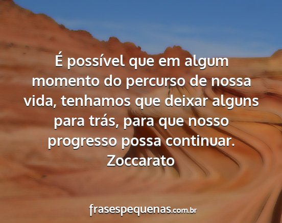 É possível que em algum momento do percurso de nossa vida, tenhamos que deixar alguns para trás, para que nosso progresso possa continuar.Zoccarato