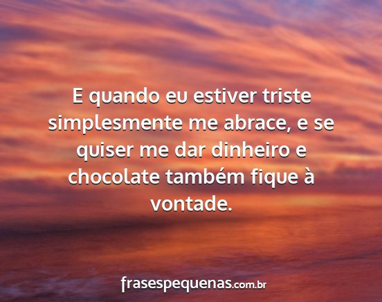 E quando eu estiver triste simplesmente me abrace, e se quiser me dar dinheiro e chocolate também fique à vontade.