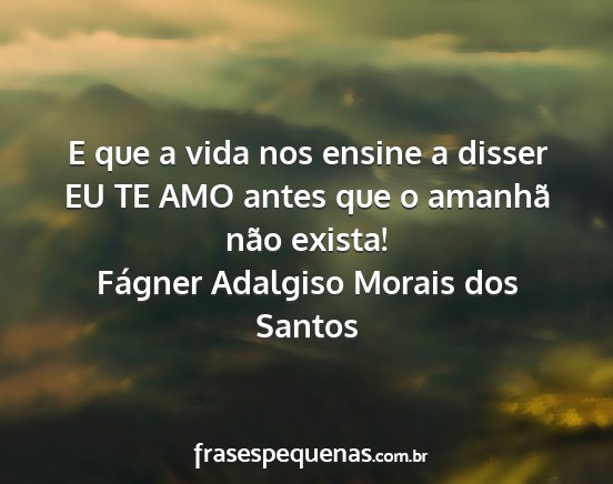 E que a vida nos ensine a disser EU TE AMO antes que o amanhã não exista!Fágner Adalgiso Morais dos Santos