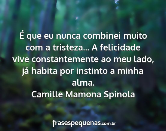 É que eu nunca combinei muito com a tristeza... A felicidade vive constantemente ao meu lado, já habita por instinto a minha alma.Camille Mamona Spinola