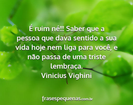 É ruim né!!! Saber que a pessoa que dava sentido a sua vida hoje nem liga para você, e não passa de uma triste lembraça.Vinicius Vighini