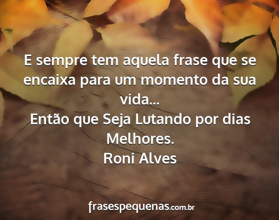 Então que Seja Lutando por dias Melhores.Roni Alves