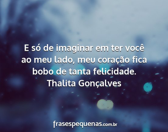 E só de imaginar em ter você ao meu lado, meu coração fica bobo de tanta felicidade.Thalita Gonçalves