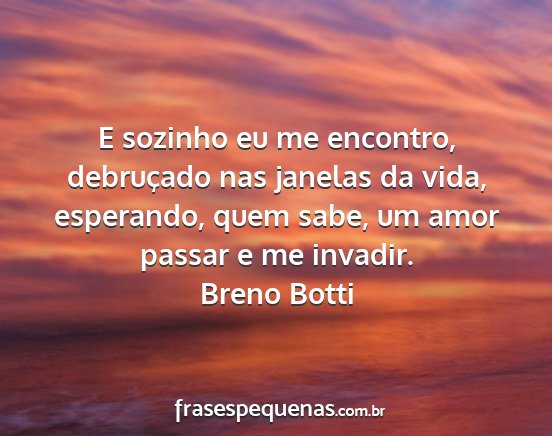 E sozinho eu me encontro, debruçado nas janelas da vida, esperando, quem sabe, um amor passar e me invadir.Breno Botti