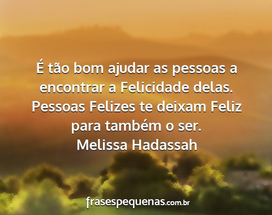 Pessoas Felizes te deixam Feliz para também o ser.Melissa Hadassah