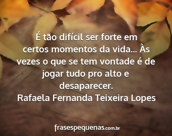 É tão difícil ser forte em certos momentos da vida... Às vezes o que se tem vontade é de jogar tudo pro alto e desaparecer.Rafaela Fernanda Teixeira Lopes