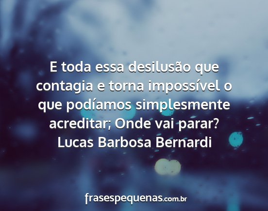 E toda essa desilusão que contagia e torna impossível o que podíamos simplesmente acreditar; Onde vai parar?Lucas Barbosa Bernardi