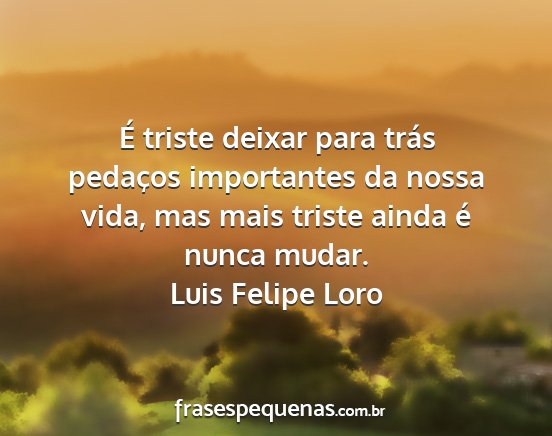 É triste deixar para trás pedaços importantes da nossa vida, mas mais triste ainda é nunca mudar.Luis Felipe Loro