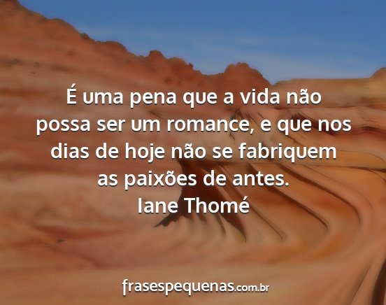 É uma pena que a vida não possa ser um romance, e que nos dias de hoje não se fabriquem as paixões de antes.Iane Thomé