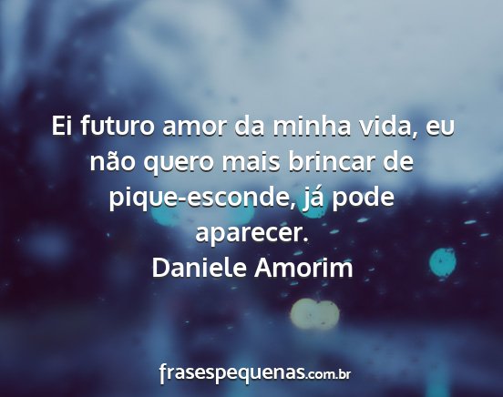 Ei futuro amor da minha vida, eu não quero mais brincar de pique-esconde, já pode aparecer.Daniele Amorim