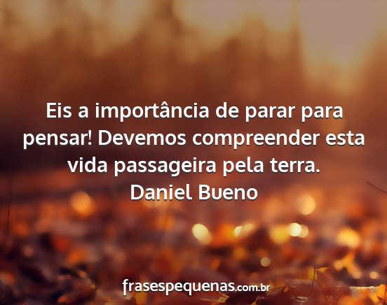 Eis a importância de parar para pensar! Devemos compreender esta vida passageira pela terra.Daniel Bueno