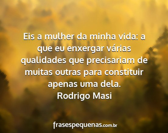 Eis a mulher da minha vida: a que eu enxergar várias qualidades que precisariam de muitas outras para constituir apenas uma dela.Rodrigo Masi