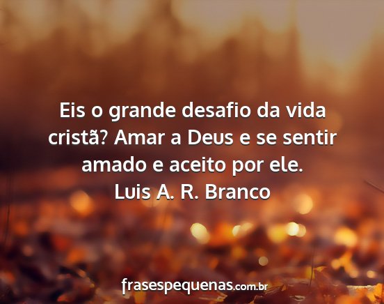 Eis o grande desafio da vida cristã? Amar a Deus e se sentir amado e aceito por ele.Luis A. R. Branco