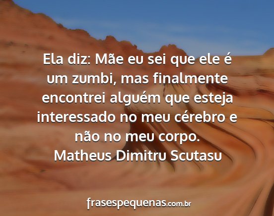 Ela diz: Mãe eu sei que ele é um zumbi, mas finalmente encontrei alguém que esteja interessado no meu cérebro e não no meu corpo.Matheus Dimitru Scutasu