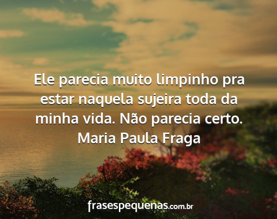 Ele parecia muito limpinho pra estar naquela sujeira toda da minha vida. Não parecia certo.Maria Paula Fraga