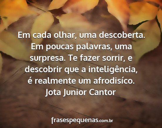 Em cada olhar, uma descoberta. Em poucas palavras, uma surpresa. Te fazer sorrir, e descobrir que a inteligência, é realmente um afrodisíco.Jota Junior Cantor