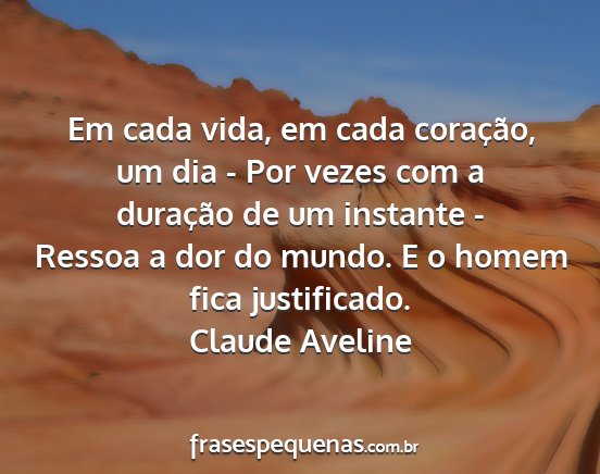 Em cada vida, em cada coração, um dia - Por vezes com a duração de um instante - Ressoa a dor do mundo. E o homem fica justificado.Claude Aveline