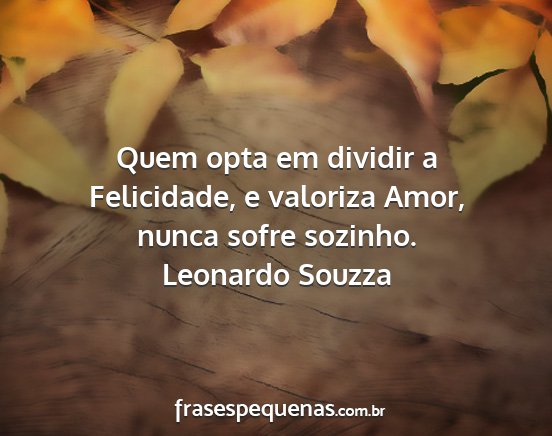 Quem opta em dividir a Felicidade, e valoriza Amor, nunca sofre sozinho.