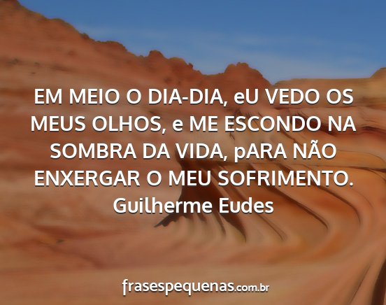 EM MEIO O DIA-DIA, eU VEDO OS MEUS OLHOS, e ME ESCONDO NA SOMBRA DA VIDA, pARA NÃO ENXERGAR O MEU SOFRIMENTO.Guilherme Eudes