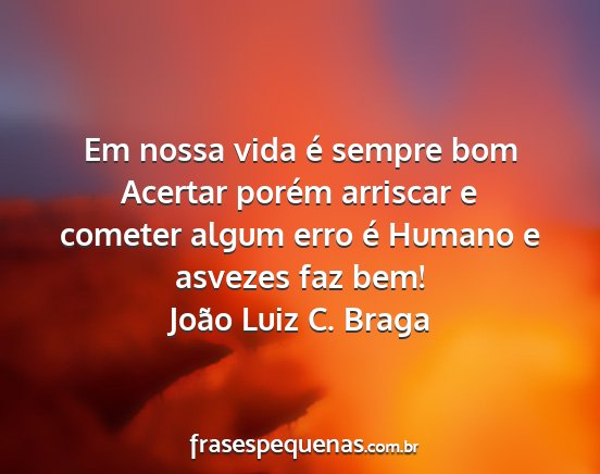 Em nossa vida é sempre bom Acertar porém arriscar e cometer algum erro é Humano e asvezes faz bem!João Luiz C. Braga