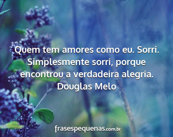 Quem tem amores como eu. Sorri. Simplesmente sorri, porque encontrou a verdadeira alegria.Douglas Melo