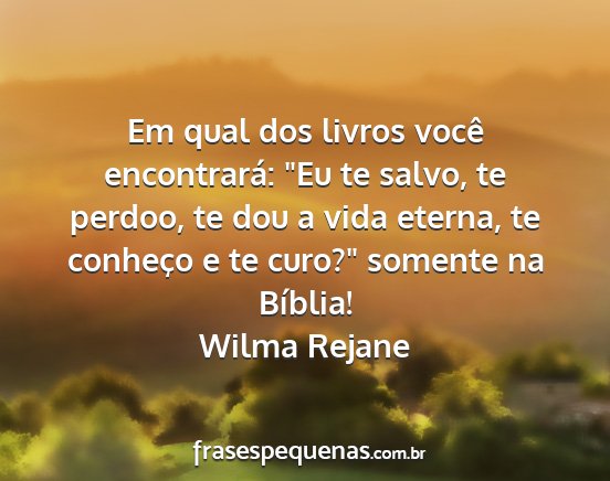 Em qual dos livros você encontrará: "Eu te salvo, te perdoo, te dou a vida eterna, te conheço e te curo?" somente na Bíblia!Wilma Rejane