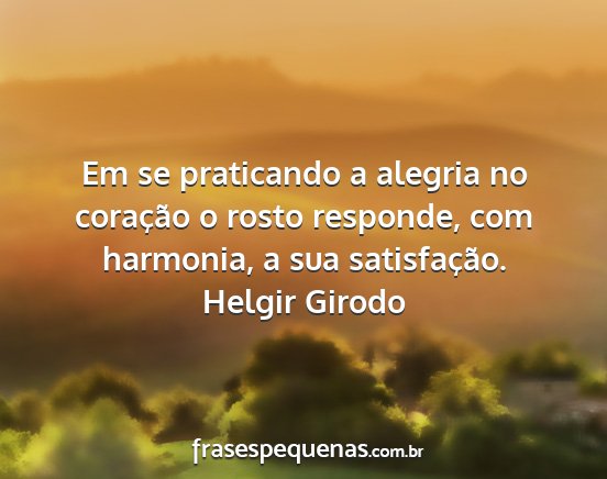 Em se praticando a alegria no coração o rosto responde, com harmonia, a sua satisfação.