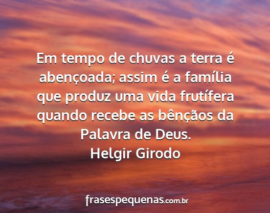 Em tempo de chuvas a terra é abençoada; assim é a família que produz uma vida frutífera quando recebe as bênçãos da Palavra de Deus.Helgir Girodo