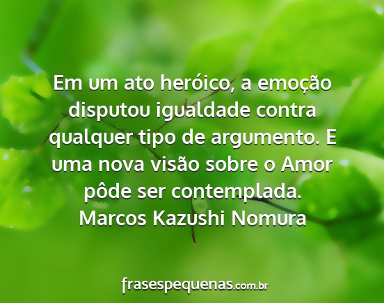 Em um ato heróico, a emoção disputou igualdade contra qualquer tipo de argumento. E uma nova visão sobre o Amor pôde ser contemplada.Marcos Kazushi Nomura