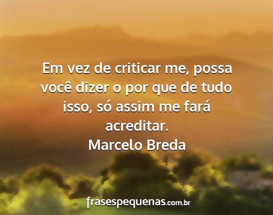 Em vez de criticar me, possa você dizer o por que de tudo isso, só assim me fará acreditar.Marcelo Breda