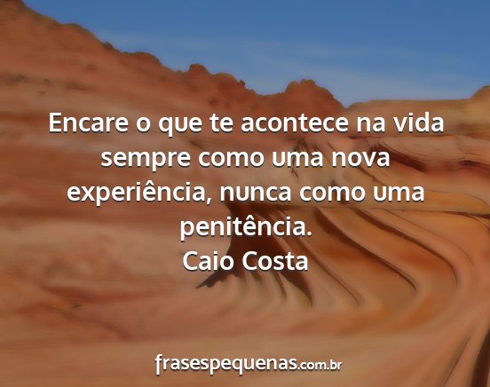 Encare o que te acontece na vida sempre como uma nova experiência, nunca como uma penitência.Caio Costa