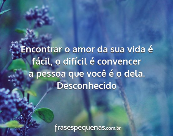 Encontrar o amor da sua vida é fácil,...