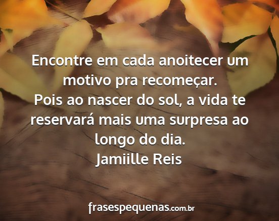 Pois ao nascer do sol, a vida te reservará mais uma surpresa ao longo do dia.Jamiille Reis