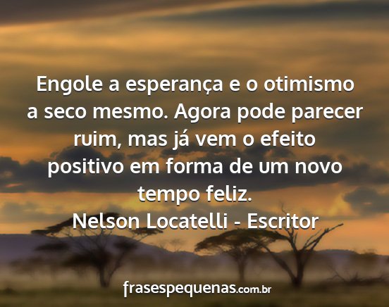 Engole a esperança e o otimismo a seco mesmo. Agora pode parecer ruim, mas já vem o efeito positivo em forma de um novo tempo feliz.Nelson Locatelli - Escritor