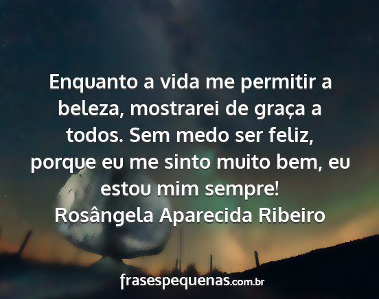 Enquanto a vida me permitir a beleza, mostrarei de graça a todos. Sem medo ser feliz, porque eu me sinto muito bem, eu estou mim sempre!Rosângela Aparecida Ribeiro