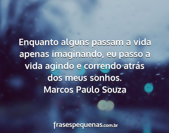 Enquanto alguns passam a vida apenas imaginando, eu passo a vida agindo e correndo atrás dos meus sonhos.Marcos Paulo Souza