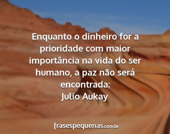 Enquanto o dinheiro for a prioridade com maior importância na vida do ser humano, a paz não será encontrada;Julio Aukay