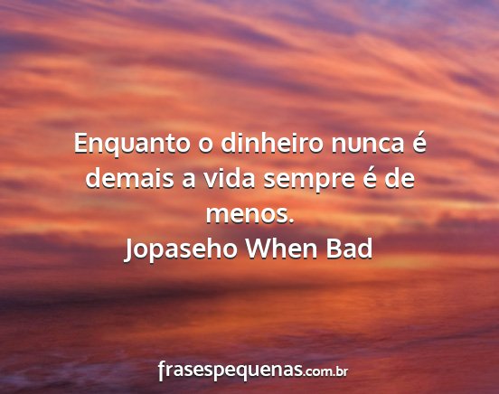 Enquanto o dinheiro nunca é demais a vida sempre é de menos.