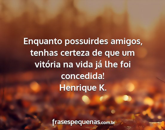 Enquanto possuirdes amigos, tenhas certeza de que um vitória na vida já lhe foi concedida!Henrique K.