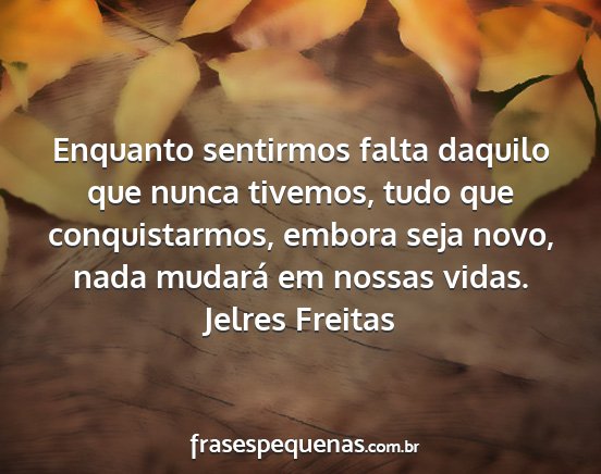 Enquanto sentirmos falta daquilo que nunca tivemos, tudo que conquistarmos, embora seja novo, nada mudará em nossas vidas.Jelres Freitas