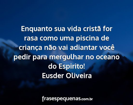 Enquanto sua vida cristã for rasa como uma piscina de criança não vai adiantar você pedir para mergulhar no oceano do Espirito!Eusder Oliveira